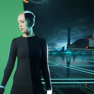 Like the film Tron or The Matrix. People are acting in front of a green screen and the background is added later by a computer.